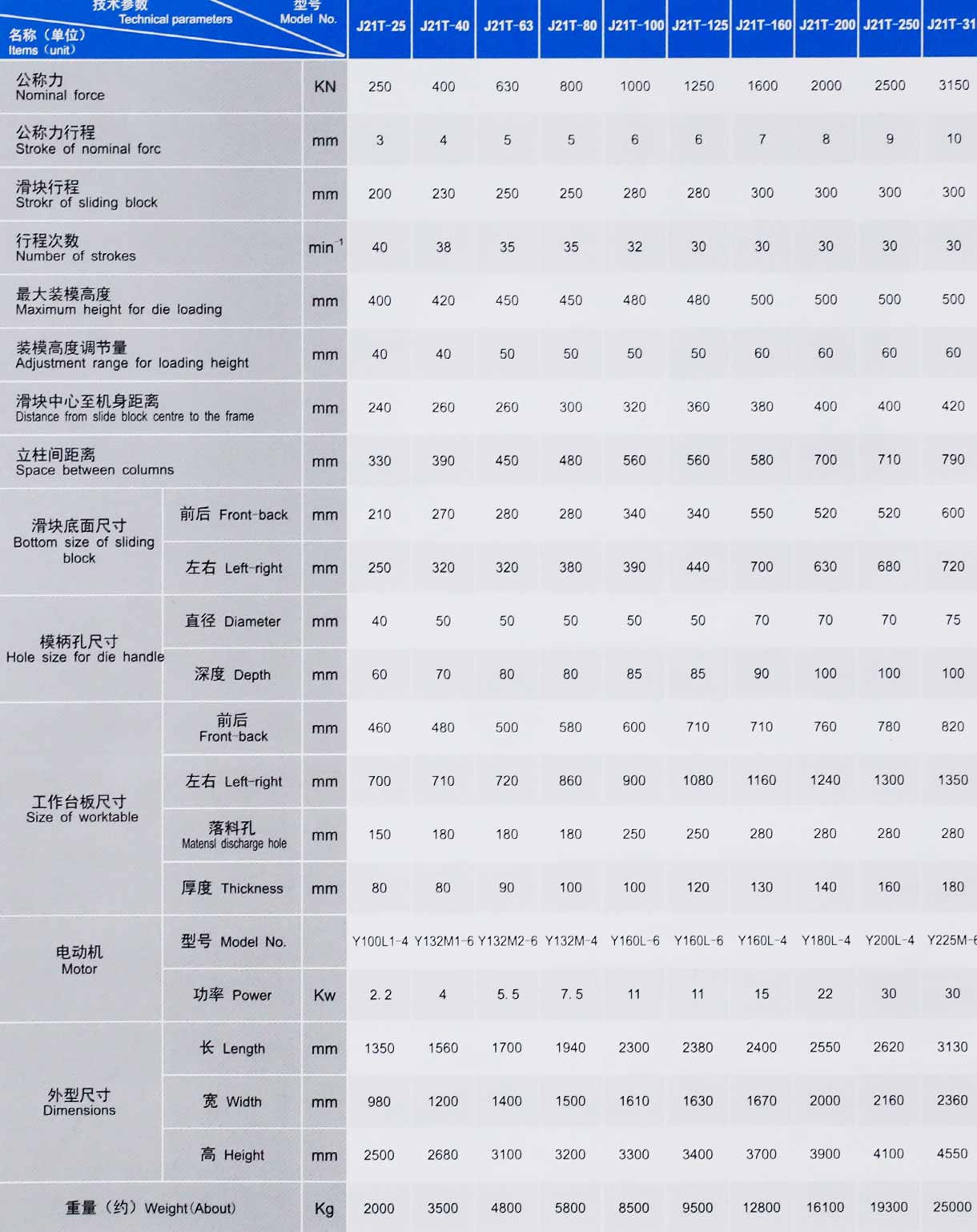 J21T系統(tǒng)開式固定臺大行程壓力機(jī)